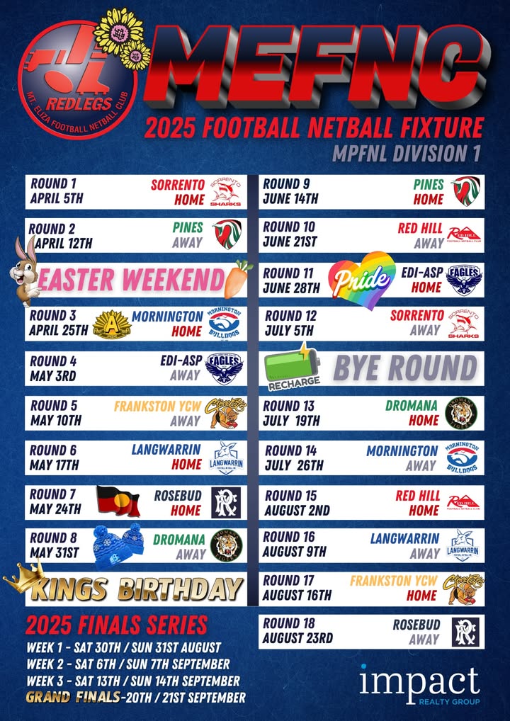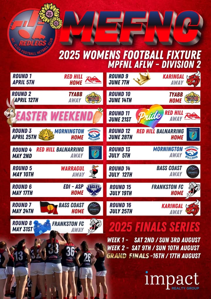 The Mt Eliza Football Club is proud to have Impact Realty Group as our Major Sponsor again this season.